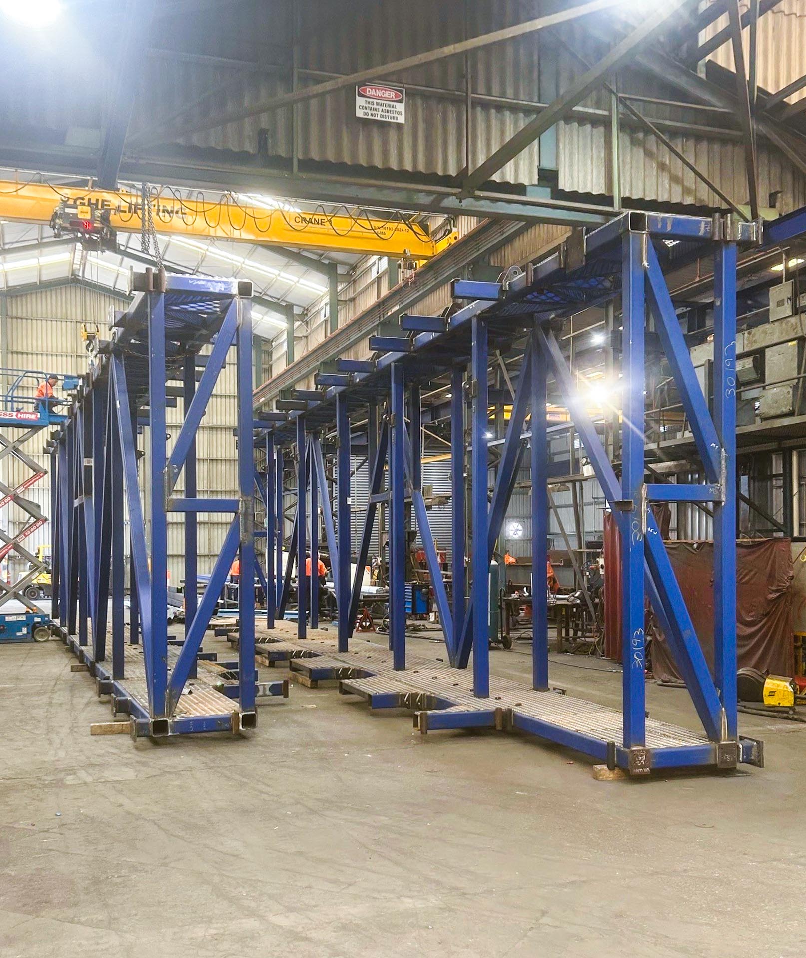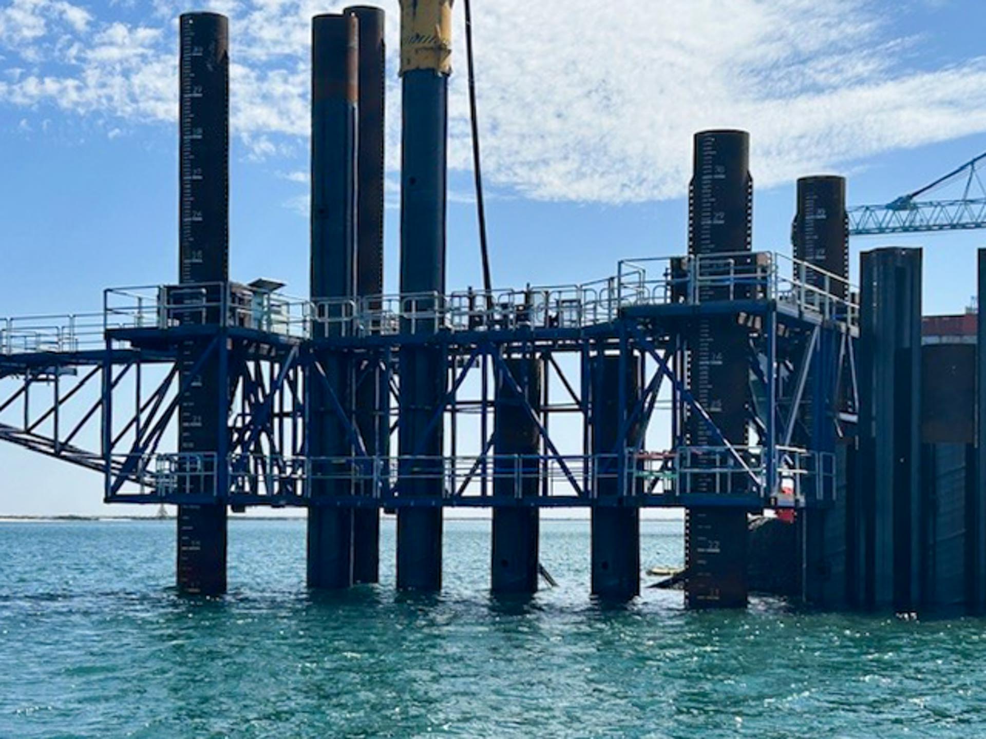 Williams Metal Fabrications’ team was responsible for the manufacture and delivery of the temporary platform frames that enable safe and efficient pile driving during construction.