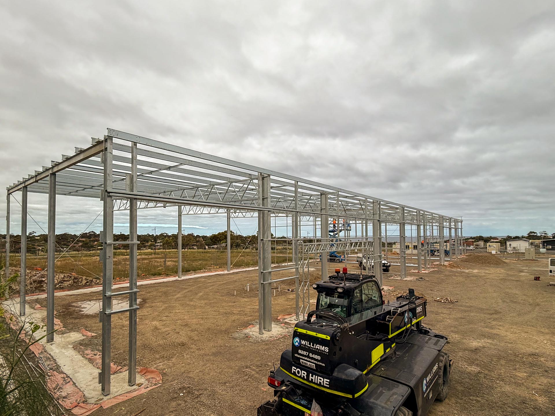Our Shed Installation team completed a 1,152m² skillion-roof warehouse in Lonsdale on behalf of CJSA – the Pacific region’s premier provider of commercial waterstop, sealing and jointing solutions for the construction industry. The new facility highlights our expertise in delivering large-scale industrial installations safely and efficiently.