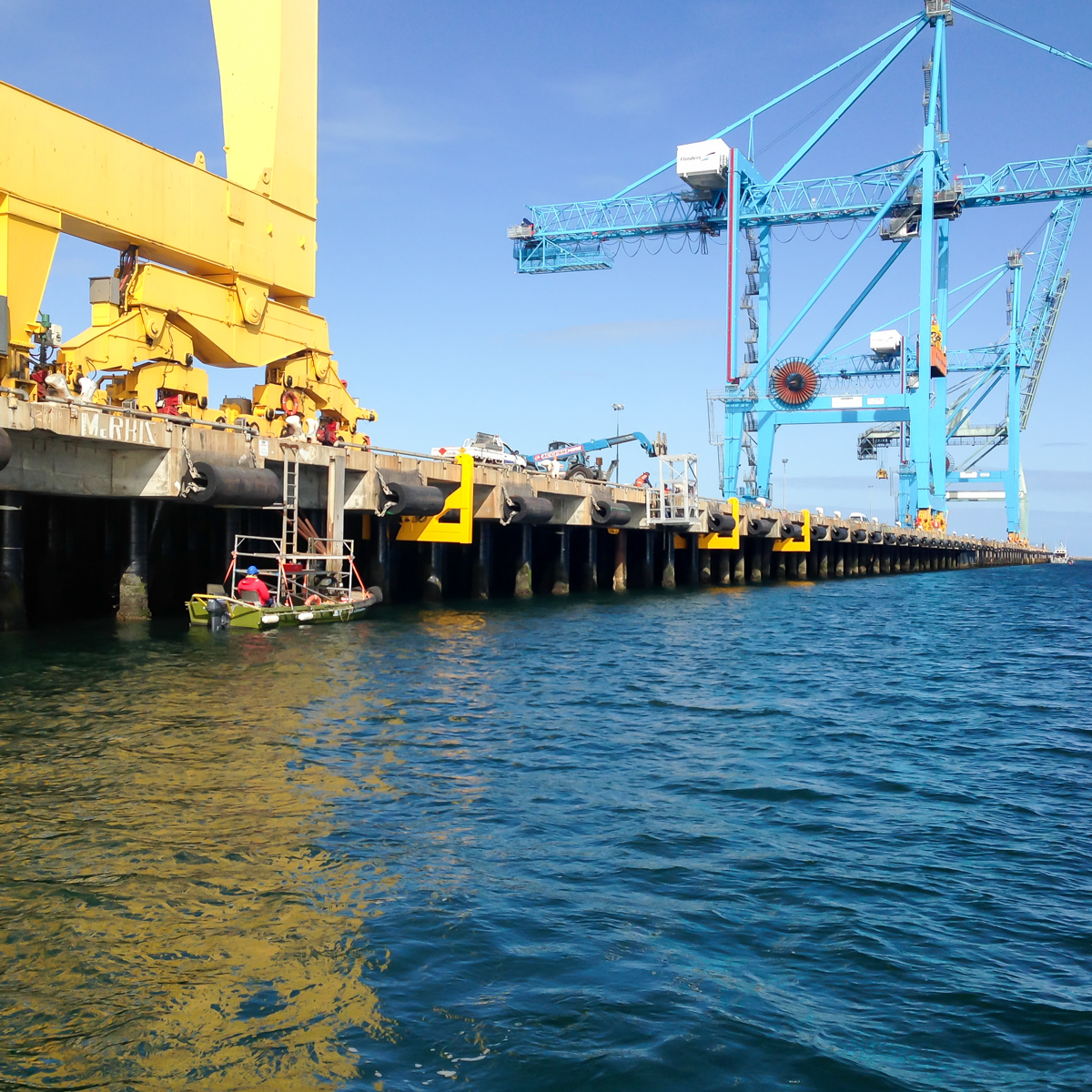 After agreeing with the client that the original design for the OH7 anchors was insufficient (making installation very difficult), we arranged for new designs with Aztec Analysis. Other changes we overcame were installation scaffolding being cancelled halfway through and needing to mobilise a work boat. We designed, fabricated and mobilised a Wharf Work Box to help with installation which proved to be an innovative idea that helped the success of the project.